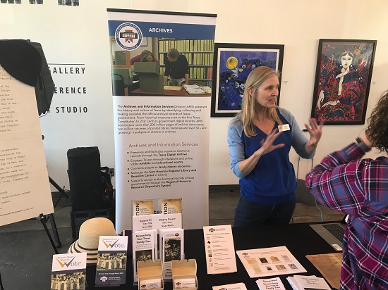 Forty archives had tables up all day. Some of them such as public libraries are familiar to all of us, but some were slightly more esoteric. There are, for example, collections called “Dallas Jewish Historical Society,” “Diocese of Dallas,” and “The Dallas Way: an LGBT History Project.”
